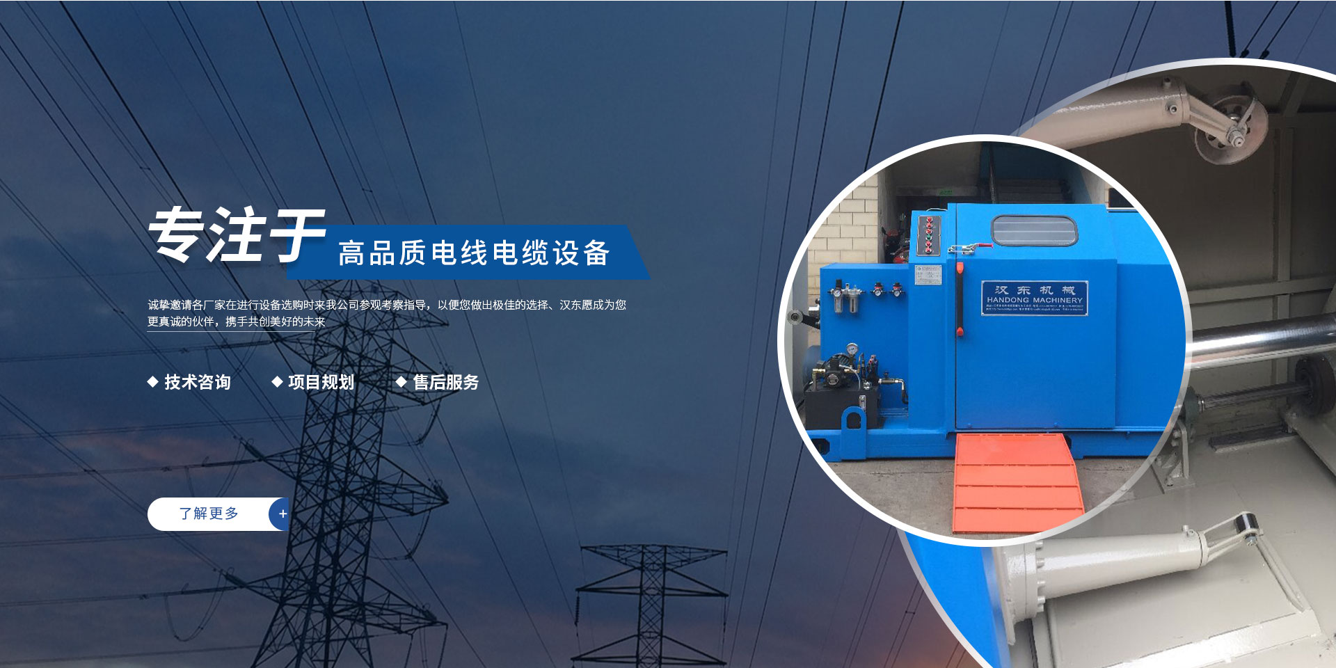 常州漢東機械始創(chuàng)于2006年,是集電線電纜機械設(shè)計、開發(fā)、制造、安裝、調(diào)試為一體化的高科技企業(yè)。本公司自開業(yè)以來,積極引進日本,歐美等國外電線電纜設(shè)備之先進技術(shù),先后成功推出了達到行業(yè)先進水平的電線電纜設(shè)備,主要產(chǎn)品有擠出、繞包、束線、成纜等電線電纜固定設(shè)備。在提供系統(tǒng)設(shè)備的同時,還向客戶提供售前技術(shù)咨詢、項目規(guī)劃、以及售后服務(wù)。我公司本著“以人為本、科技先導(dǎo)、用戶為上”的宗旨,為客戶提供牢靠的產(chǎn)品與省心的服務(wù)。漢東愿成為您更真誠的伙伴,攜手共創(chuàng)美好的未來! 了解更多+